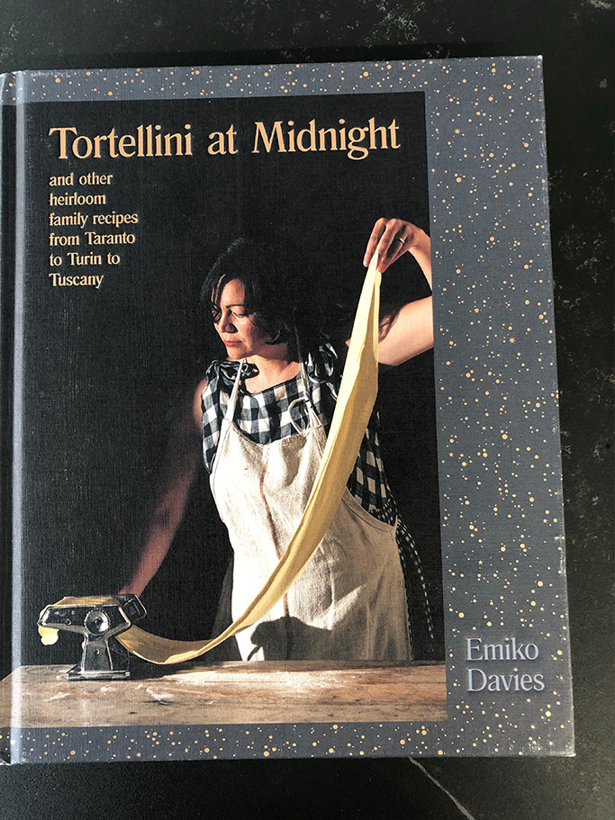 בשבוע שעבר, בלי שום קשר למצב הקשה בעולם ובמיוחד באיטליה, קיבלתי בדואר את ספר הבישול עם השם הכי רומנטי שיש "טורטליני בחצות" (Tortellini at midnight). זה לא רק ספר בישול אלא מעין מכתב אהבה לאיטליה, לאוכל האיטלקי של איזור פוליה וטורין ובעיקר למשפחה האיטלקית של המחברת, אמיקו דיוויס.