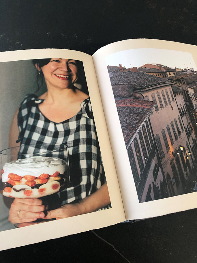 בין סיפורי המשפחה המרגשים והתמונות הישנות תוכלו למצוא מתכונים לזוקוטו , שהיא עוגת ספוג ממולאת בריקוטה ושוקולד, סלטי ארטישוק, גריסיני אגוזי מלך, אורקייטי מפוליה ואניילוטי מפיידמונט, בודינו אורז וזופה אינגלזה. וגם מתכון לטורטליני חצות, שהוא מסורת משפחתית לחגיגות השנה החדשה בדיוק בחצות.