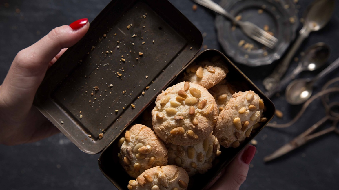עוגיות הן היהלום של האפייה האיטלקית, שהיא כפרית, פשוטה ופחות מתוחכמת (ומתחכמת) כזו של הצרפתים. את עוגיות הפיניולי (צנוברים) אפשר למצוא בכל מאפייה באיטליה וההכנה שלהן פשוטה במיוחד מצרכים 100 גרם צנוברים 150 גרם שקדים טחונים 2 חלבוני ביצה 1/4 כוס אבקת סוכר אופן ההכנה טוחנים את אבקת השקדים, הסוכר וחלבוני הביצה במעבד מזון. יוצרים עיגולים ומשטחים על תבנית מרופדת…
